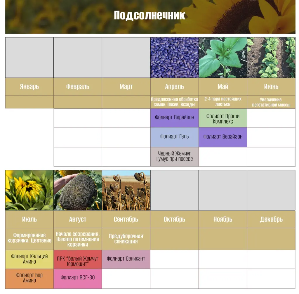 Sunflower. As a commercial crop, sunflower is of great importance to the national economy in the technological, forage, feed, honey, and plant growing industries. Sunflower is the country's primary oilseed crop. Safe cultivation of agricultural crops requires an understanding of their characteristics, adherence to basic sowing and care rules, and monitoring at all stages of plant growth and development. Our agricultural calendar provides nutrition recommendations for various growth and vegetation phases.